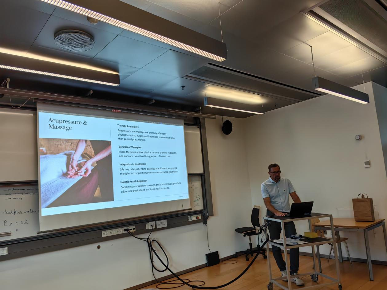 主旨报告环节,杰斯帕·博·尼尔森教授介绍了丹麦全科医疗发展情况和教育情况,特别是南丹麦大学入学条件;安徽中医药大学针灸推拿学院副院长吴子建介绍了学校及学院的总体情况、特色优势以及国际合作项目;南丹麦大学健康科学学院运动与健康科学系主任安妮玛丽·斯文森(Annemari Svendsen)介绍了运动与健康科学系的课程设置以及国际教育、科研合作项目、短期交流访问项目等;南丹麦大学科学学院化学系主任斯蒂芬·巴林(Steffen Bäring)做科学学院英语硕士课程介绍;衢州职业技术学院医学院院长邱惠萍介绍了医学院建设情况以及针灸高职教育特色。