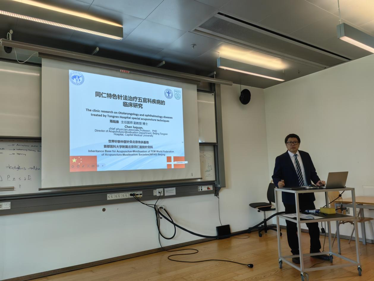 在“全科医疗、中医的临床应用、丹麦医院、临床与科研结合”分论坛,南丹麦大学全科医疗研究小组托本·迪布道尔(Torben Dybdal)介绍了丹麦的全科医疗情况;云南中医药大学第一附属医院儿科副主任医师明溪讲解了中医芳香疗法联合揿针治疗儿童鼻炎哮喘综合征;安徽中医药大学实训中心主任兰崴介绍了膝骨关节炎的针灸治疗及康复训练;欧登塞大学医院安德斯·弗雷德里克森(Anders Frederiksen)介绍了该医院链接患者、医院和大学的实践;首都医科大学附属北京同仁医院针灸科主任陈陆泉讲解了同仁特色针法治疗五官科疾病的临床研究。
