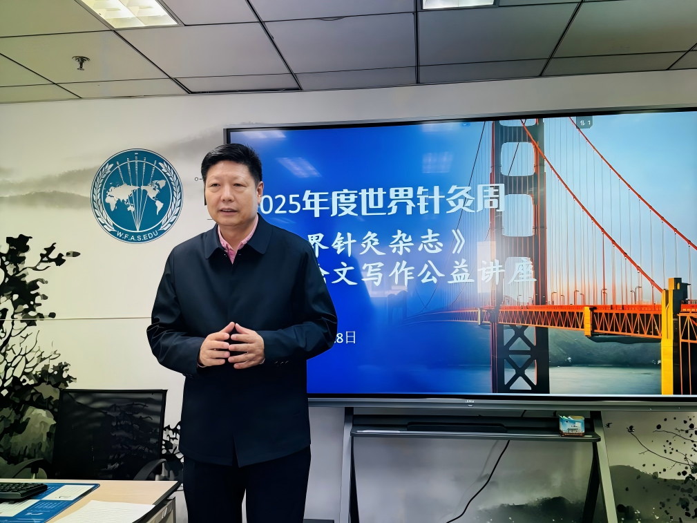 2025年11月18日,喜迎第十二个“世界针灸周”,以“非遗针灸,人类健康”为主题的“科研论文写作公益讲座”在北京圆满举办。本次活动由世界针灸学会联合会主办,《世界针灸杂志》编辑部与世界针联秘书处联合组织举办。中国中医科学院主任医师、世界针联秘书长杨金生教授,学术部部长殷海波,中国中医科学院主任医师、《世界针灸杂志》(英文版)副主编刘炜宏教授,首都医科大学宣武医院冯路达博士,《世界针灸杂志》编辑部编审郭盛楠和郝洋,以及近40位学员齐聚现场,共话科研论文写作之道。讲座由世界针联殷海波教授主持。
