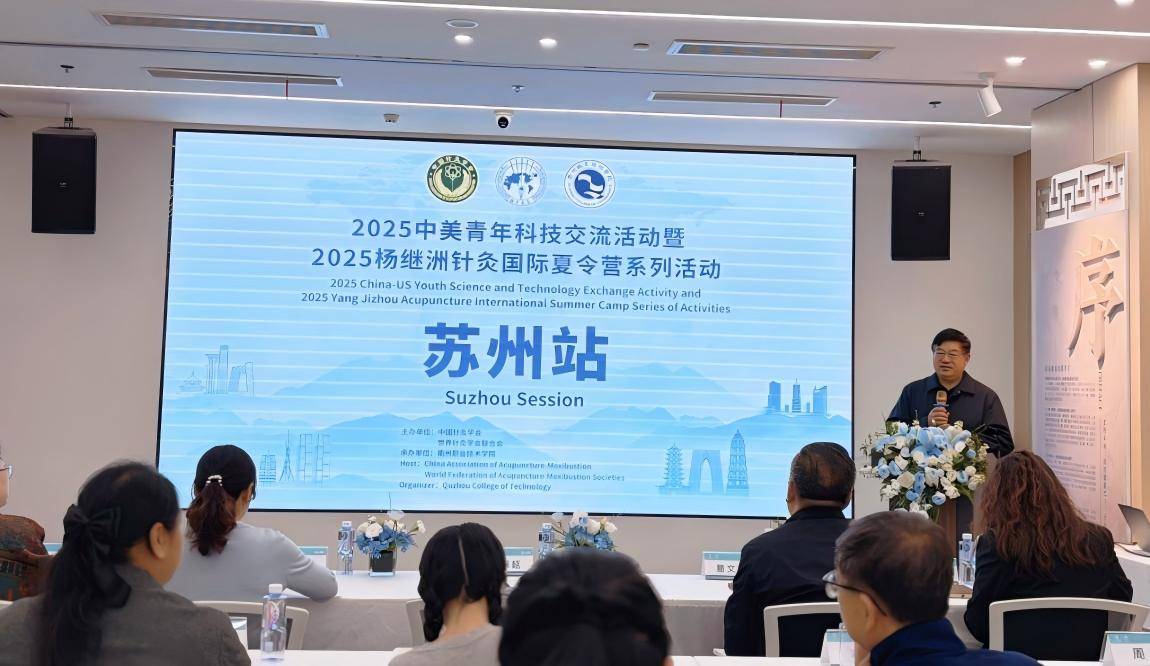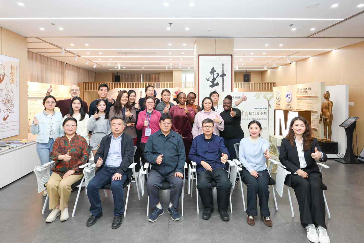 由中国针灸学会、世界针灸学会联合会主办,衢州职业技术学院承办的“2025中美青年科技交流活动暨2025杨继洲针灸国际夏令营”在北京正式启动。14名来自美国的青年科技人才跨越重洋,开启一场融贯中西、科学与人文交织的针灸探索之旅。中国针灸学会会长喻晓春、中国中医科学院连聘首席研究员朱兵、世界针灸学会联合会常务副秘书长杨宇洋、中国针灸学会副秘书长易文军、吴江市云龙医疗器械有限公司董事长陈悦婷等领导嘉宾出席开营仪式。中国针灸学会副会长兼秘书长景向红主持。