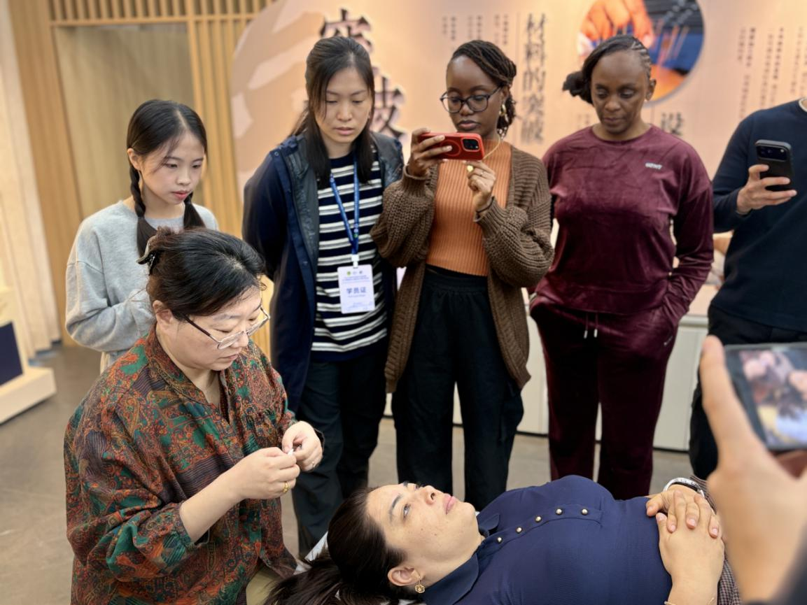 11月3日至4日,在衢州职业技术学院,美籍青年们在国家级非遗“杨继洲针灸”第五代传承人金瑛的带领下,沉浸式体验针灸技法,触摸中医核心智慧。在无锡标教授的“印象衢州”讲座中了解衢州的千年历史文化。