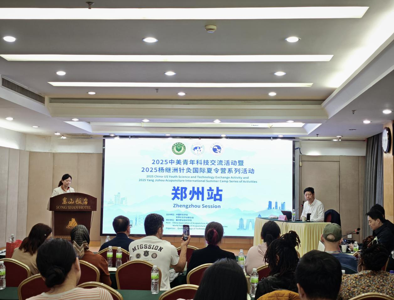 次日,美籍青年代表受邀参加2025郑州“一带一路”中医针灸技术交流大会,与国内外专家共话针灸在全球健康事业中的前沿应用。