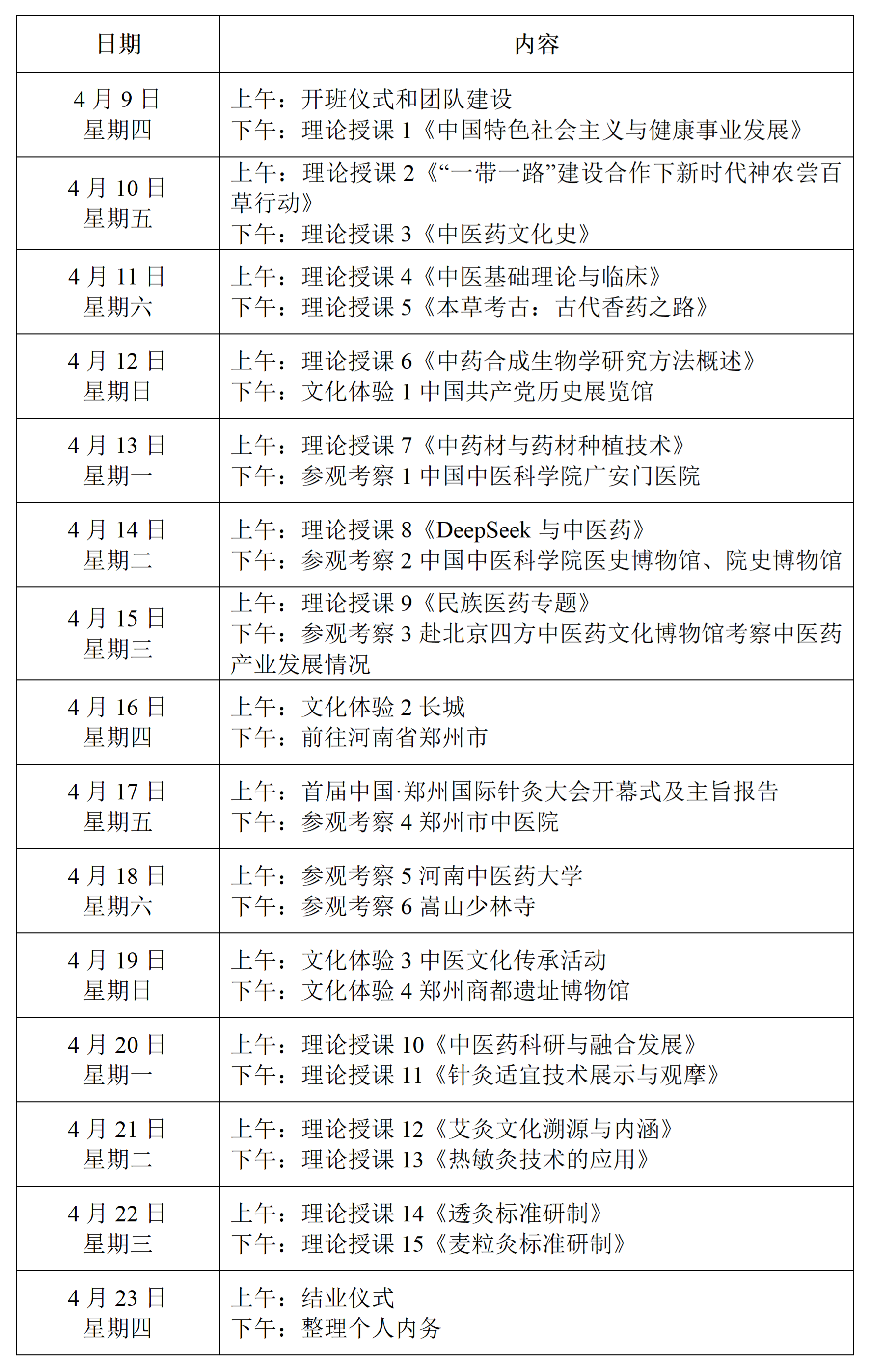 В целях реализации инициативы «Пояс и путь », углубления обменов и сотрудничества между Китаем и пятью странами Центральной Азии и странами-партнерами в области традиционной медицины, оказания помощи развивающимся странам в решении проблемы бедности научно-техническими средствами, наша Академия планирует провести международный учебный курс по технологиям сокращения бедности в области традиционной медицины для пяти стран Центральной Азии и развивающихся стран-партнеров по инициативе «Пояс и путь» 9-23 апреля 2026 года в Пекине, Чжэнчжоу и Лоян провинции Хэнань.