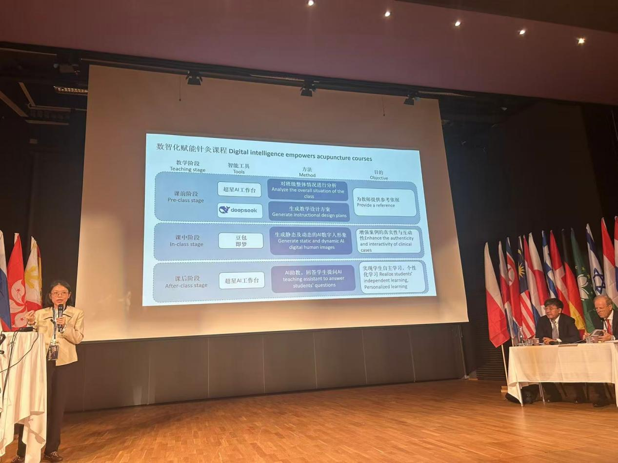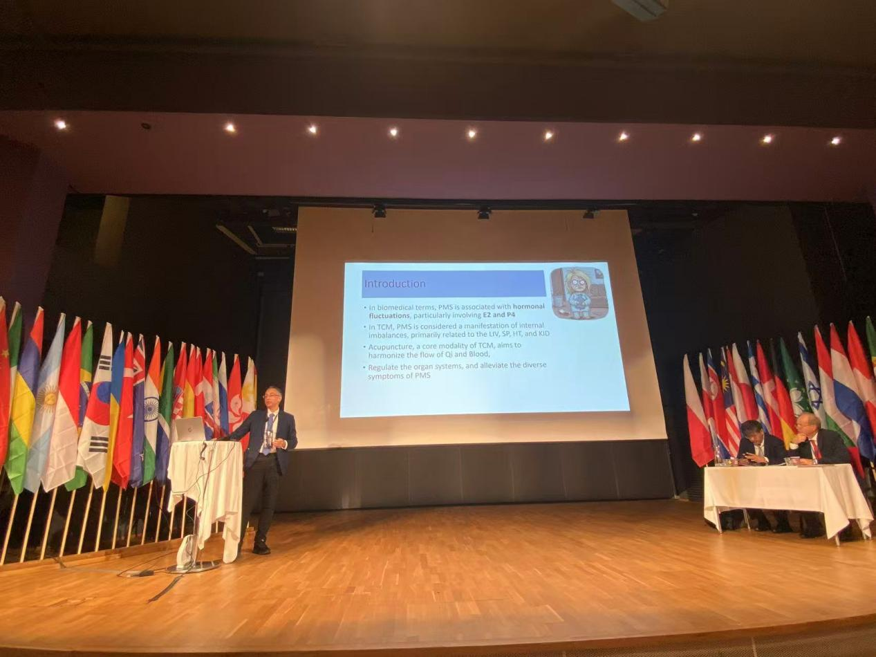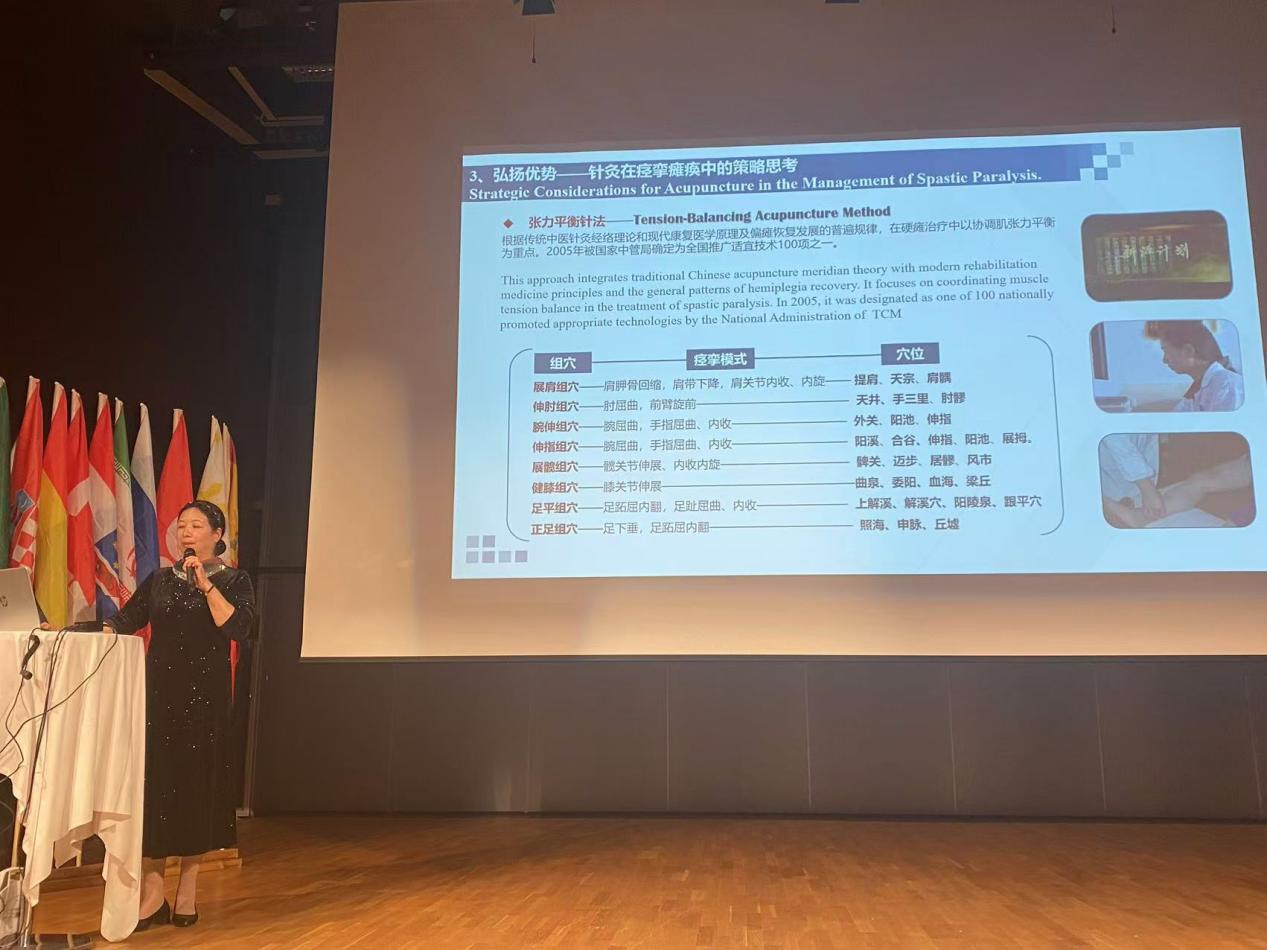 世界针灸学会联合会教育工作委员会委员王宏教授作“张缙针刺手法在国际针灸教育中的传播初探”主题报告。